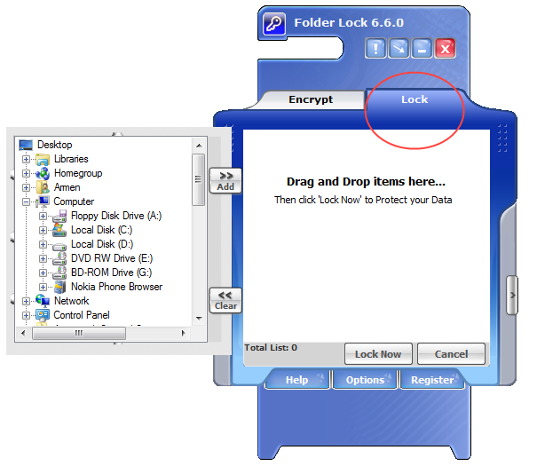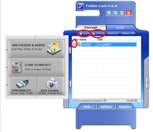 Թղթապանակները կամ ֆայլերը թաքցնելու կամ կոդավորելու համար գոյություն ունեն բազմաթիվ մեթոդներ ու ծրագրեր: Այսօր կխոսենք դրանցից մեկի մասին: Գոյություն ունի Folder Lock ծրագիր, որի միջոցով կարող ենք անել վերը նշված գործողությունները: Ծրագրից օգտվելը շատ հեշտ է: Ծրագրում կա 2 տարբերակ՝ կոդավորել և արգելափակել: Առաջին տարբերակի դեպքում պաշտպանությունը մեծանում է, սակայն ավելի դանդաղ է աշխատում: Խորհուրդ է տրվում օգտագործել երկրորդ տարբերակը (lock): Նշեմ նաև, որ այլ օգտագործող չի կարող ջնջել ծրագիրը, քանի որ այն հնարավոր է ջնջել միայն ծրագրի մեջ ձեր նշած գաղտնաբառը գրելով: Այժմ տեսնենք թե ինչպես է այն աշխատում: